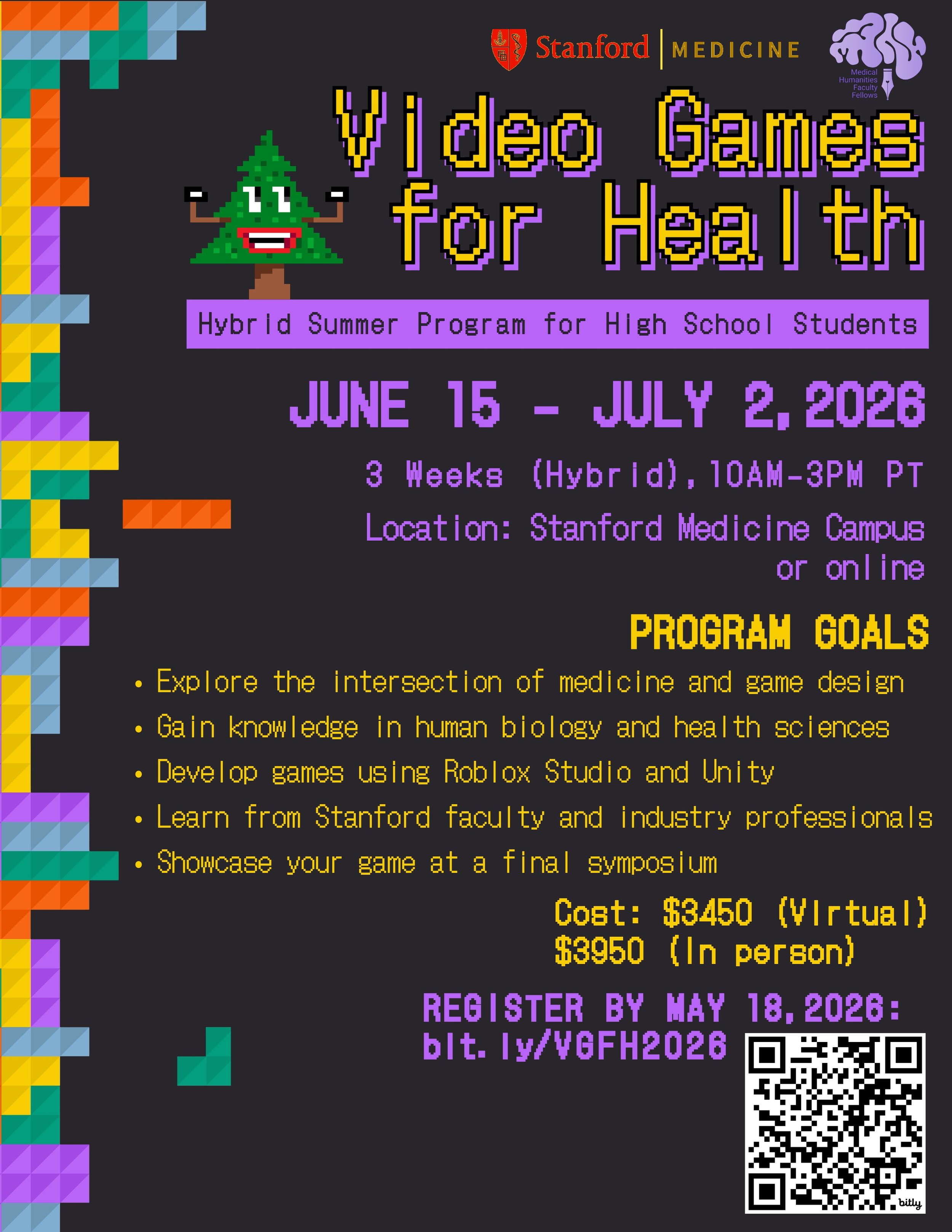 No prior experience in health or game design is required, as we encourage a diverse range of participants from various backgrounds, both within the sciences and the arts. By the end of the program, you will have not only created a meaningful game design but also gained a deeper understanding of medical science. This unique program leverages the resources of our institution to help you forge lasting connections within a community of like-minded, dedicated learners.